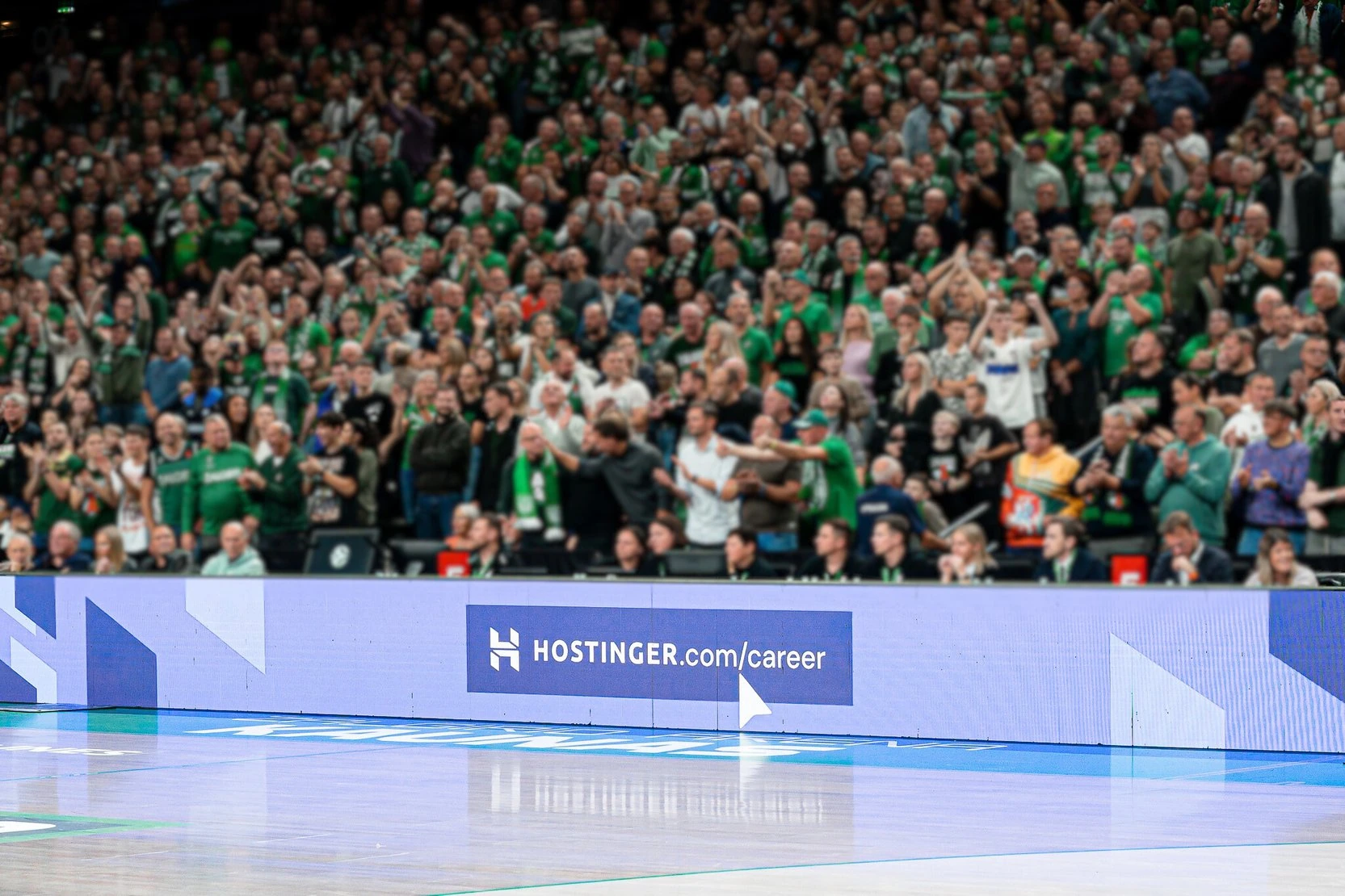Hostinger ads will be shown during Euroleague and Lithuanian Basketball League (LKL) games at the Žalgiris arena, focusing on attracting future employees and raising awareness among clients. This demonstrates our commitment to one of our core principles – ‘Customer Obsession’ – which guides us at every step.