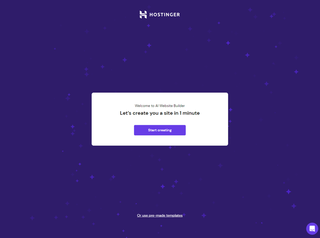 - Purchase a hosting plan and create your account. During the onboarding process, click Select Hostinger Builder.