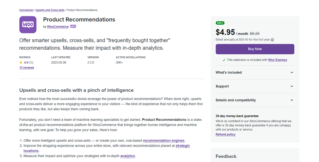 This plugin utilizes machine learning algorithms to analyze user behavior, purchase history, and product data to deliver personalized recommendations to customers. The suggestions adapt and improve over time, ensuring users see the most relevant items based on their preferences.