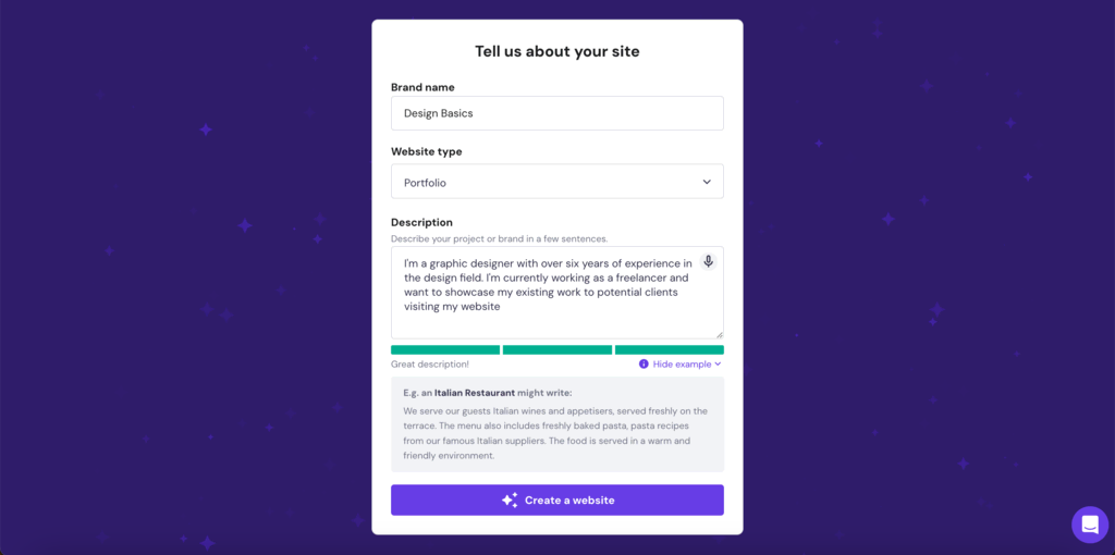 Hostinger’s portfolio website builder offers an all-encompassing solution that can help graphic designers build, host, and maintain their entire portfolio online with ease.