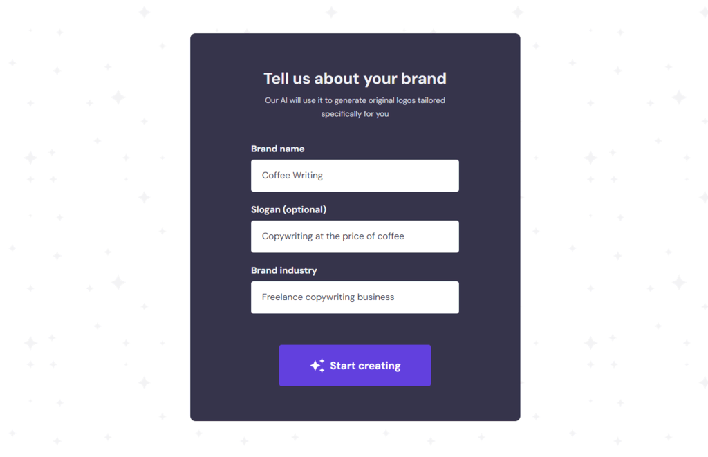 That’s why we recommend leveraging tools like the Hostinger AI Logo Maker to ease the task. Simply enter the brand name, slogan, and industry of your freelance business, and the AI tool will generate a variety of logo options for you – all of which are customizable.