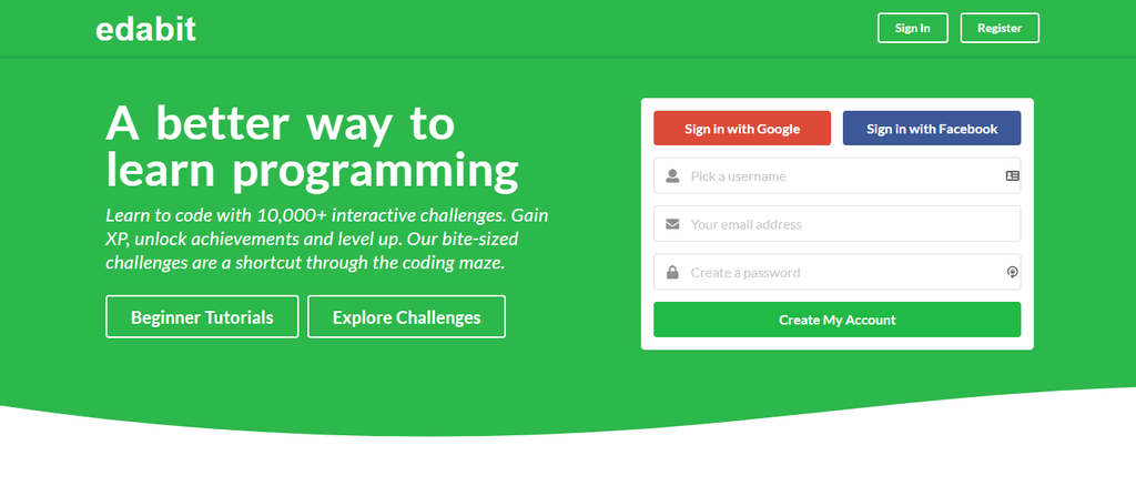 Offering thousands of bite-sized challenges to improve coding knowledge, Edabit is a website using simple game mechanics to create a fun and addictive learning experience. Students can gain experience, unlock achievements, and level up.