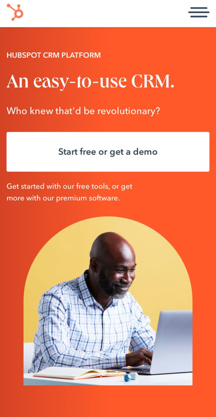 HubSpot’s mobile-responsive website is a great example of this approach, with easy-to-read text, a hamburger menu, and a search bar to ensure smooth navigation.
