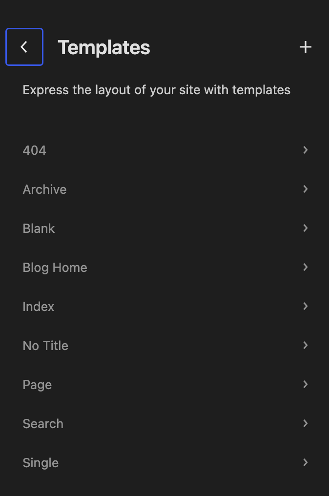 - Click the + icon in the upper right corner of the Templates menu.