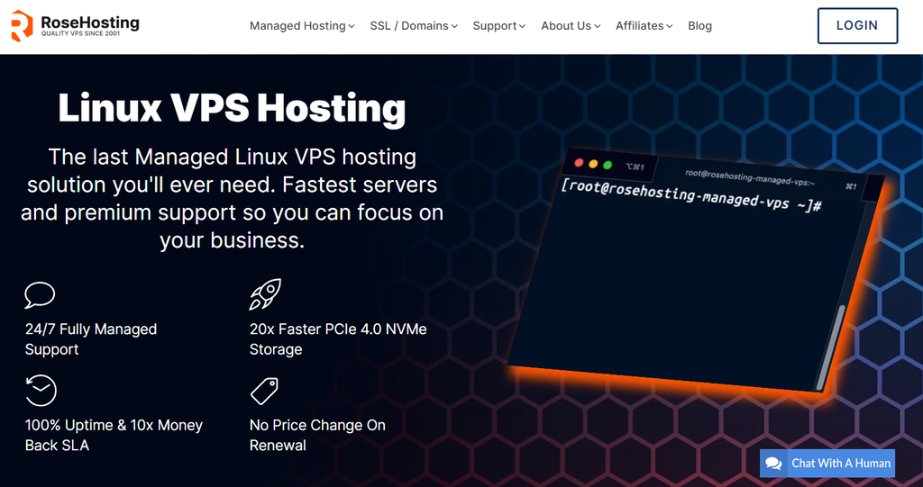 - RoseHosting – excellent for businesses looking for a managed VPS hosting plan.