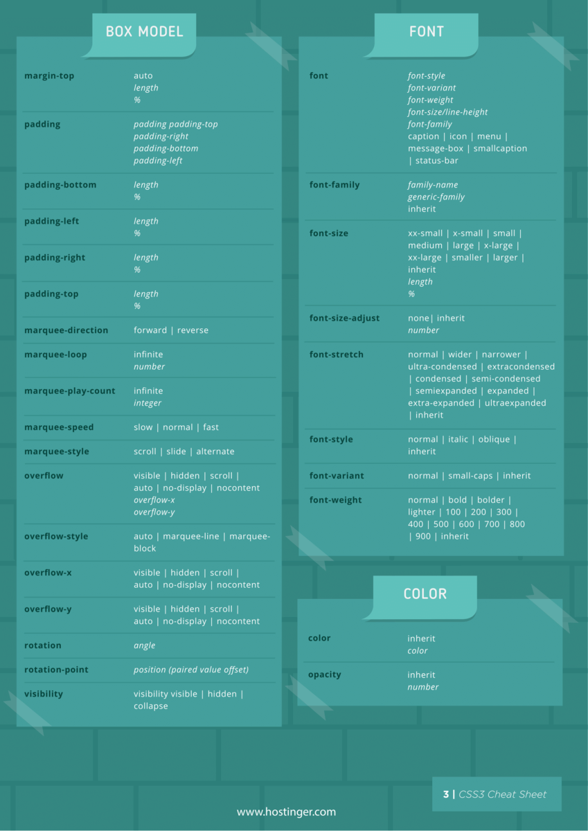 Since CSS has so many selectors and declarations that might be hard to remember, we’ve put together a complete CSS and CSS3 Cheat Sheet to help you master the language.