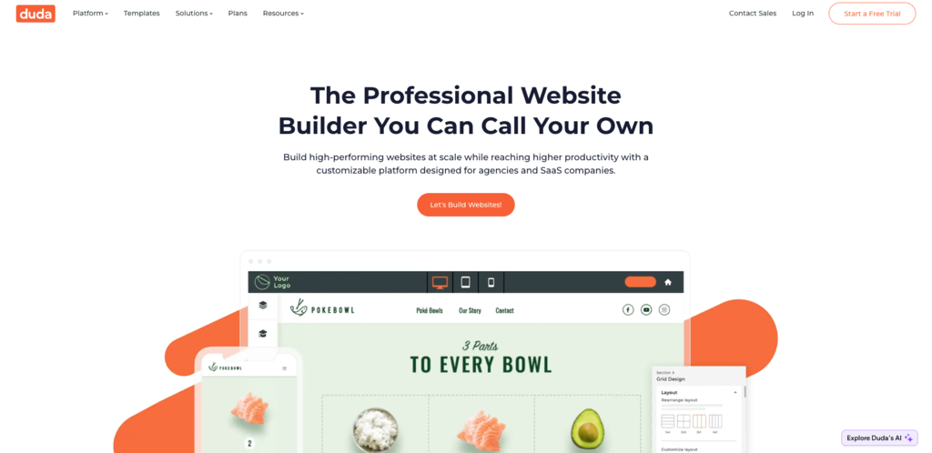 Duda is a section-based website builder that focuses on speed and efficiency, offering built-in tools to make the website-building process faster.