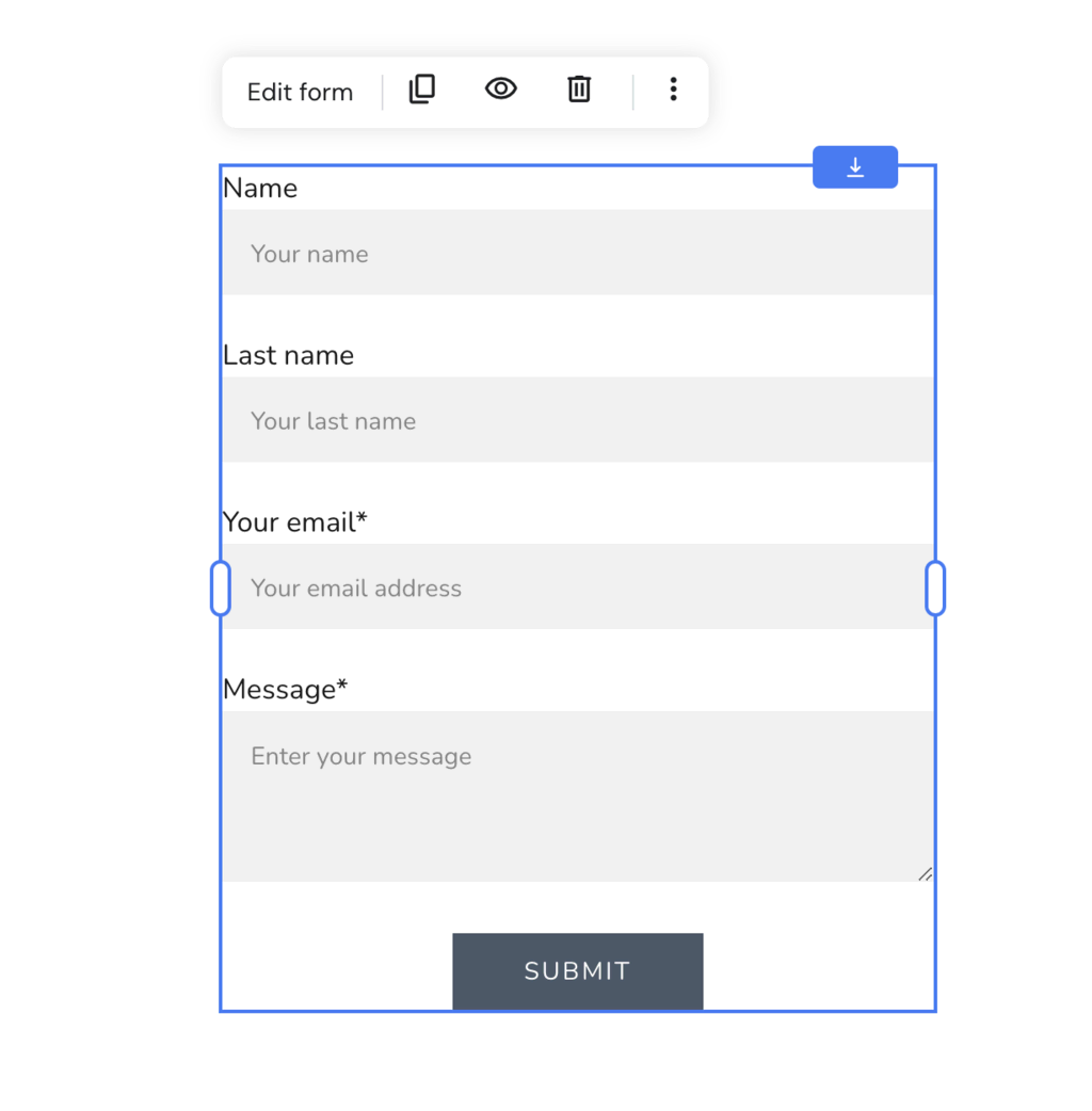 1. Drag and drop your chosen element to the desired position on the web page. For this example, we’ll select the Contact form.