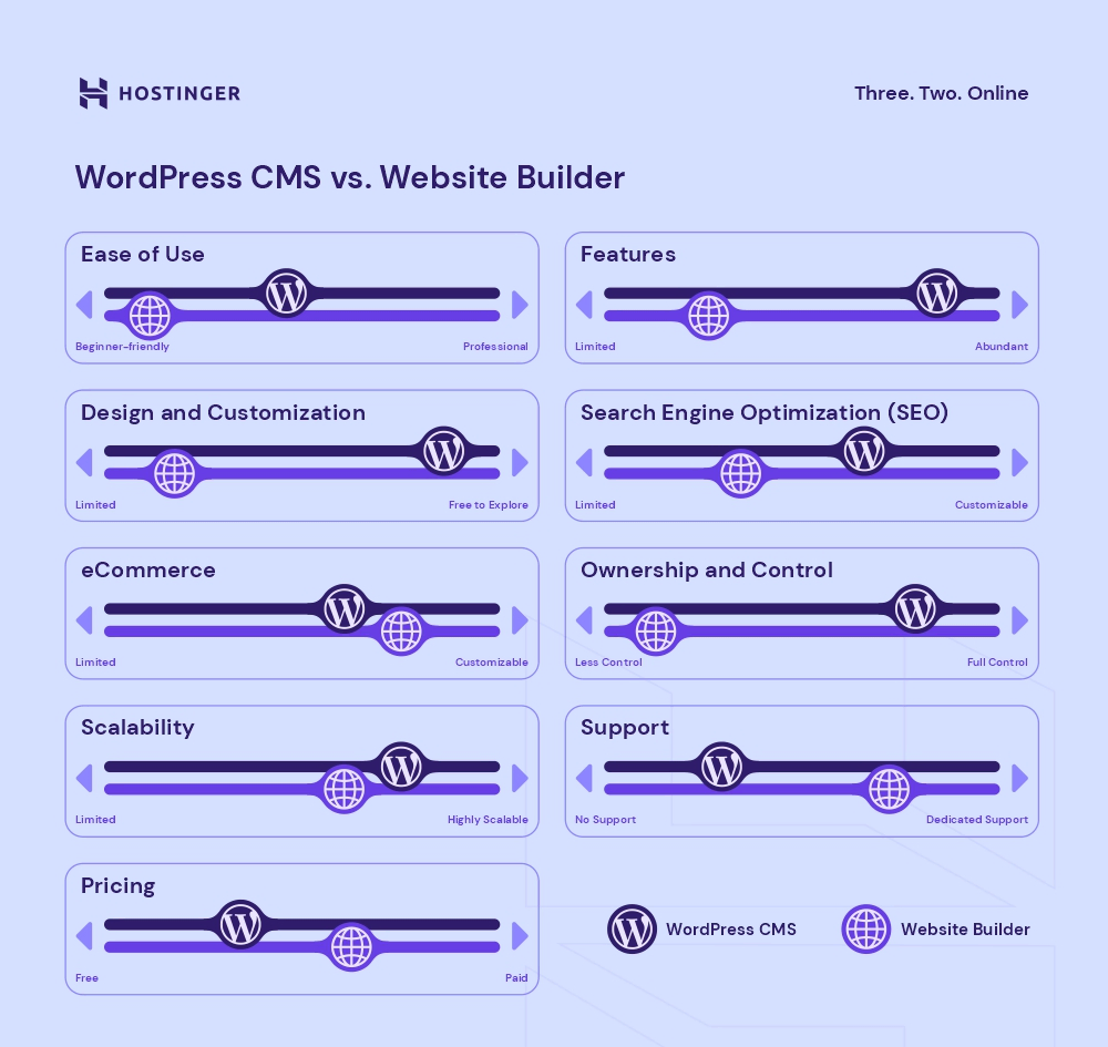 If you want hands-on control and flexibility, go with WordPress. However, if you prefer a more user-friendly and effortless web-building experience, choose Hostinger Website Builder.