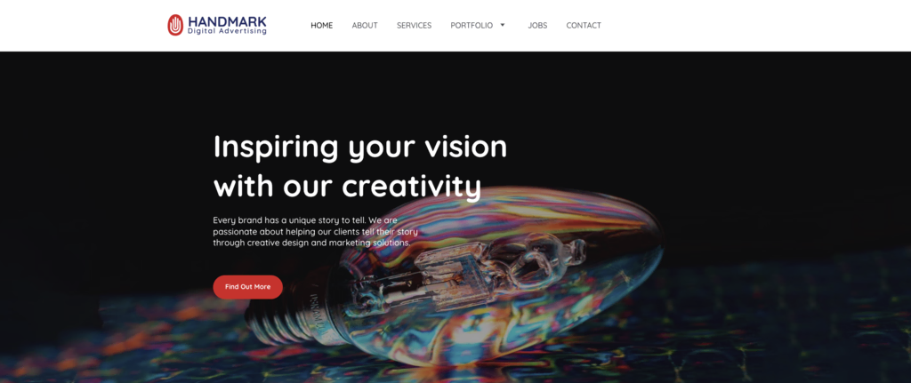 Handmark’s marketing portfolio effectively showcases this agency’s strengths in digital advertising and branding. The website’s homepage introduces the team’s comprehensive service range, highlighting its full-service approach.