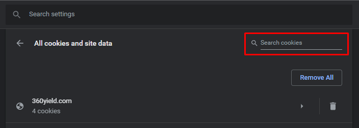 - Select Cookies and other site data, scroll down, and click See all cookies and site data.