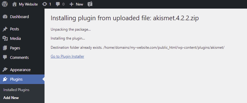 Fix the Destination Folder Already Exists Error via the WordPress Dashboard
